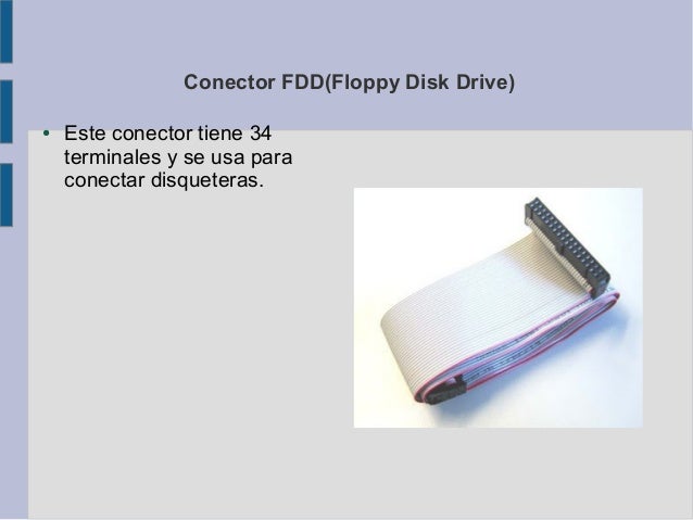 10. Conector FDD(Floppy Disk Drive)● Este conector tiene 34 terminales y se usa para conectar disqueteras.